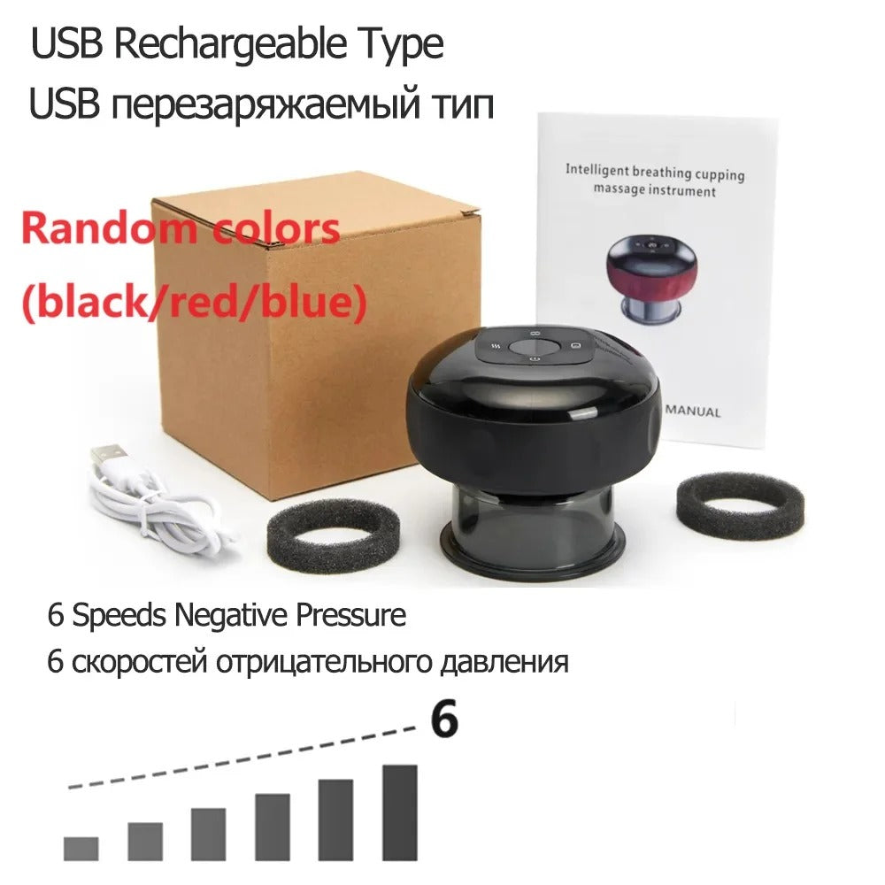 Electric Vacuum Cupping Therapy This clinical-grade electric cupping device delivers targeted pain relief through controlled vacuum therapy. By stimulating blood flow to affected areas, it helps reduce inflammation, release trigger points, and alleviate chronic discomfort in muscles and joints. The precision suction mechanism provides consistent therapeutic pressure without manual fatigue, making it effective for managing back pain, neck tension, shoulder stiffness, and sports-related soreness. Adjustable settings allow customization for individual pain levels and treatment goals, offering a non-invasive alternative for sustained relief and improved mobility.